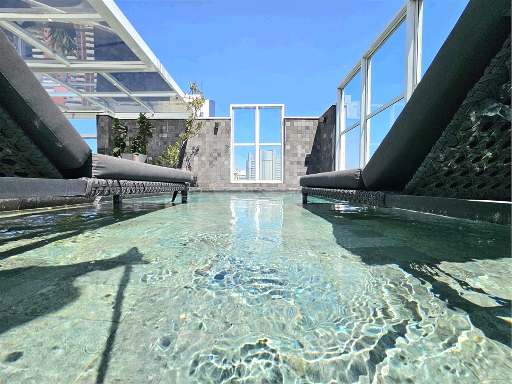 Cobertura única com piscina aquecida revestida em pedra Hijau, prainha, deck e uma vista espetacular da cidade.
