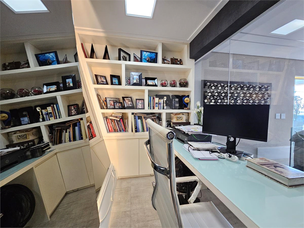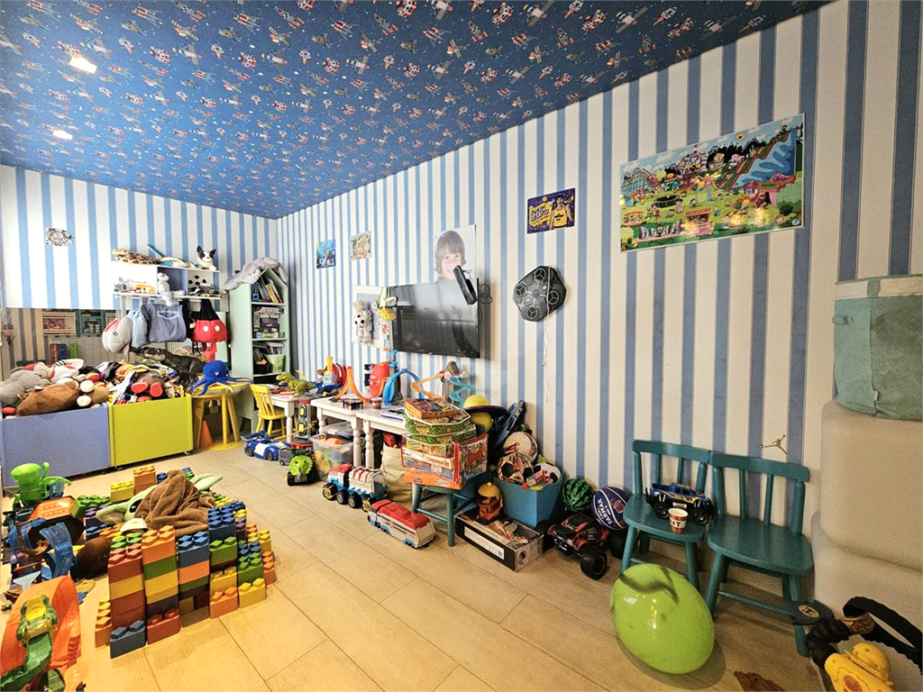 PISO SUPERIOR: área descoberta com piscina, deck e lounge, área gourmet com churrasqueira e cozinha de apoio, salas para 3 ambientes, lavabo, escritório, 4º dormitório (hoje brinquedoteca) e um amplo depósito.