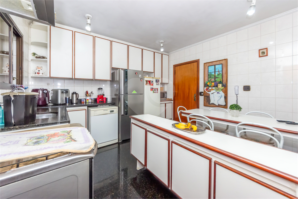 Belíssima Cobertura, na Vila Mariana, conta com quatro dormitórios (4 quartos), sendo 2 suítes, todos eles com armários embutidos, seis banheiros ao todo (incluindo o de serviço) -, ampla sala para dois ambientes, sala de estar (living) e sala de jantar, cozinha repleta de armários, dependência de serviço completa (quarto e banheiro), despensa, lavanderia (área de serviço) e 3 vagas de garagem para carro. Além de, no piso superior, contar com sala, cozinha, banheiro, área gourmet - com churrasqueira e forno de pizza - e piscina privativa.