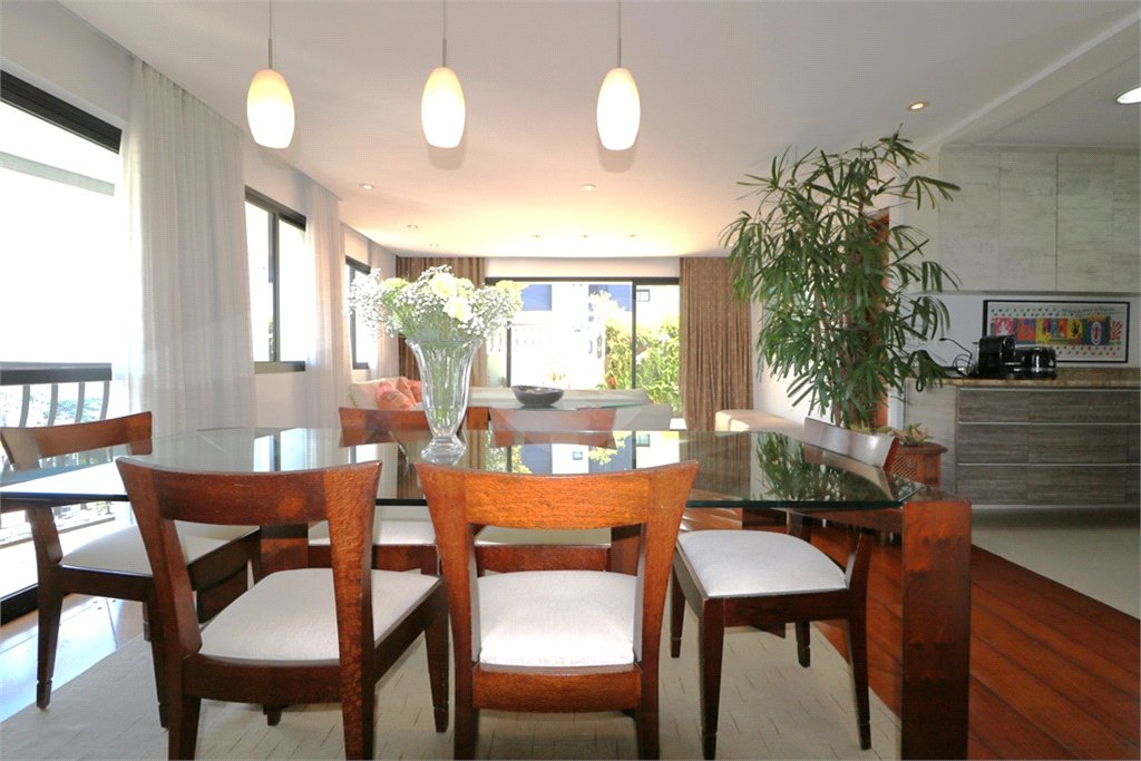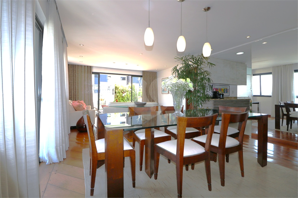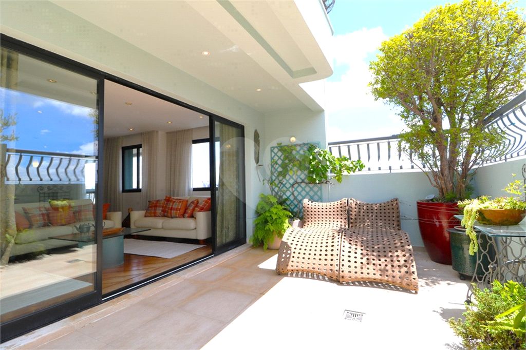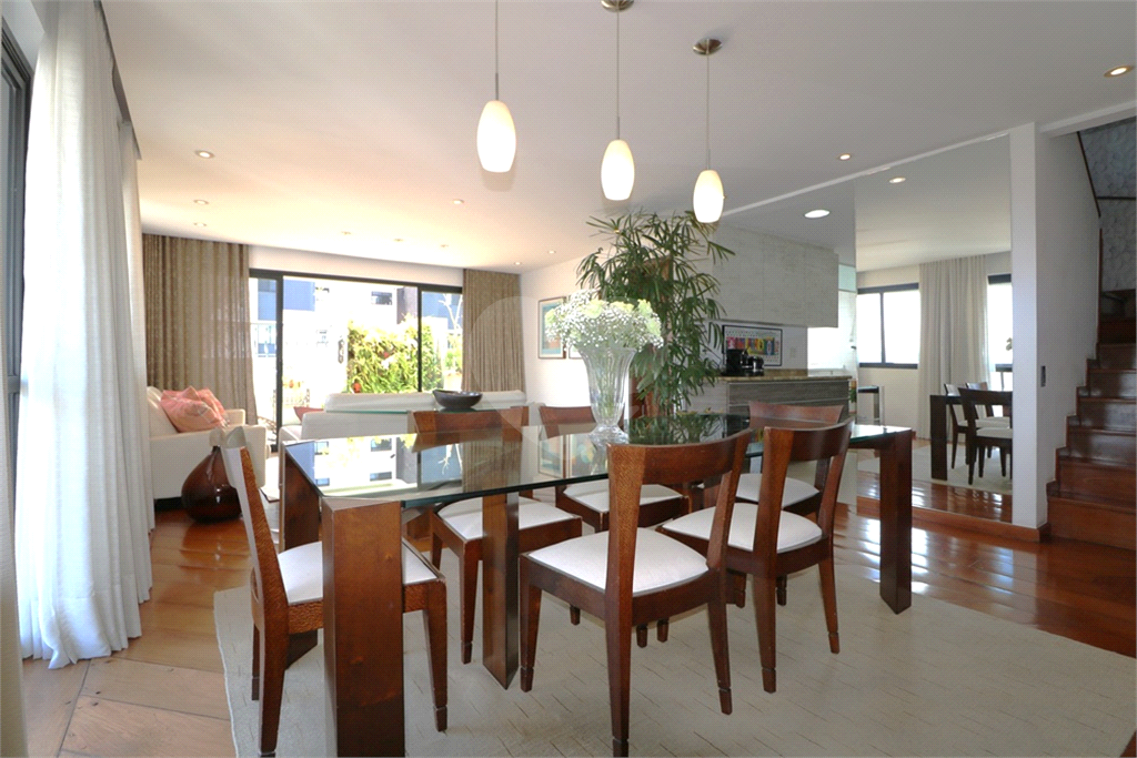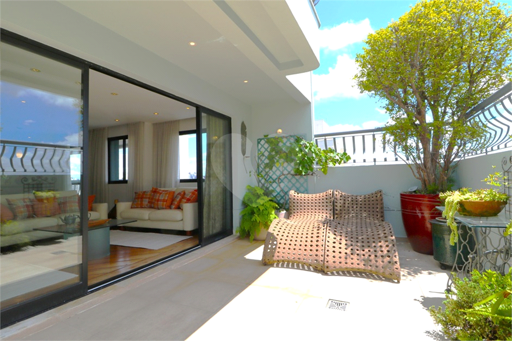Moema - Cobertura Duplex em estilo "Top House", onde a parte social está no primeiro piso, contendo sala com ambientes de estar e jantar, com a cozinha integrada e amplo terraço com espaço para instalação de hidromassagem ou ofurô, mais área de serviços - No piso superior, duas suítes, sendo a máster bastante ampla com terraço fechado com vidro e closet, escritório ou home theater. Edifício em localização próxima aos melhores colégios do bairro, Catamarã, Lourenço Castanho, CONSA, Mobile, clubes de lazer, tais Monte Líbano, Sírio Libanês, academias, restaurantes, supermercados, hortifrutis, hospitais, shopping Ibirapuera, áreas de lazer como o Parque do Ibirapuera, Parque das Bicicletas, acesso rápido e fácil às principais avenidas e ao Aeroporto de Congonhas e acessibilidade às estações da linha Lilás do Metrô. Cobertura duplex reformada, bom gosto, planta original projetada para três dormitórios, nessa unidade um dos dormitórios foi transformado em home theater, podendo ser facilmente revertido. Ar condicionado nos ambientes. Três vagas na garagem.