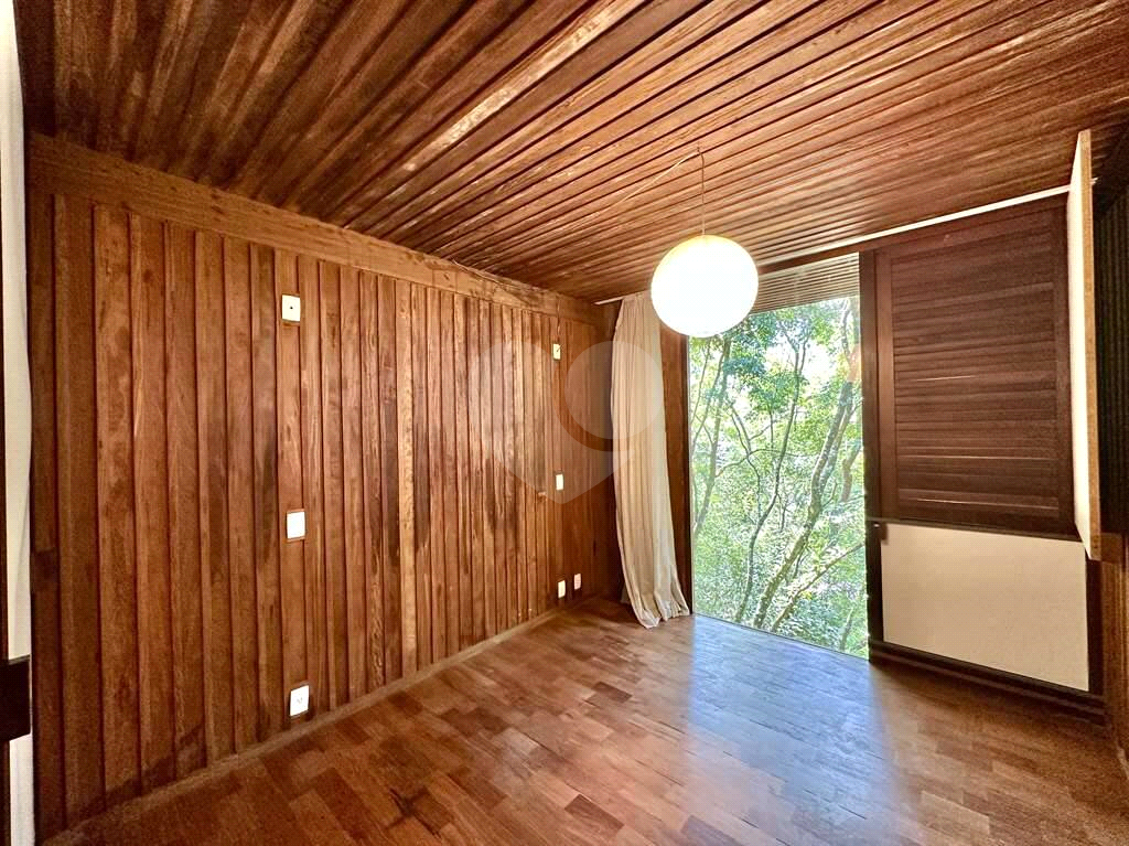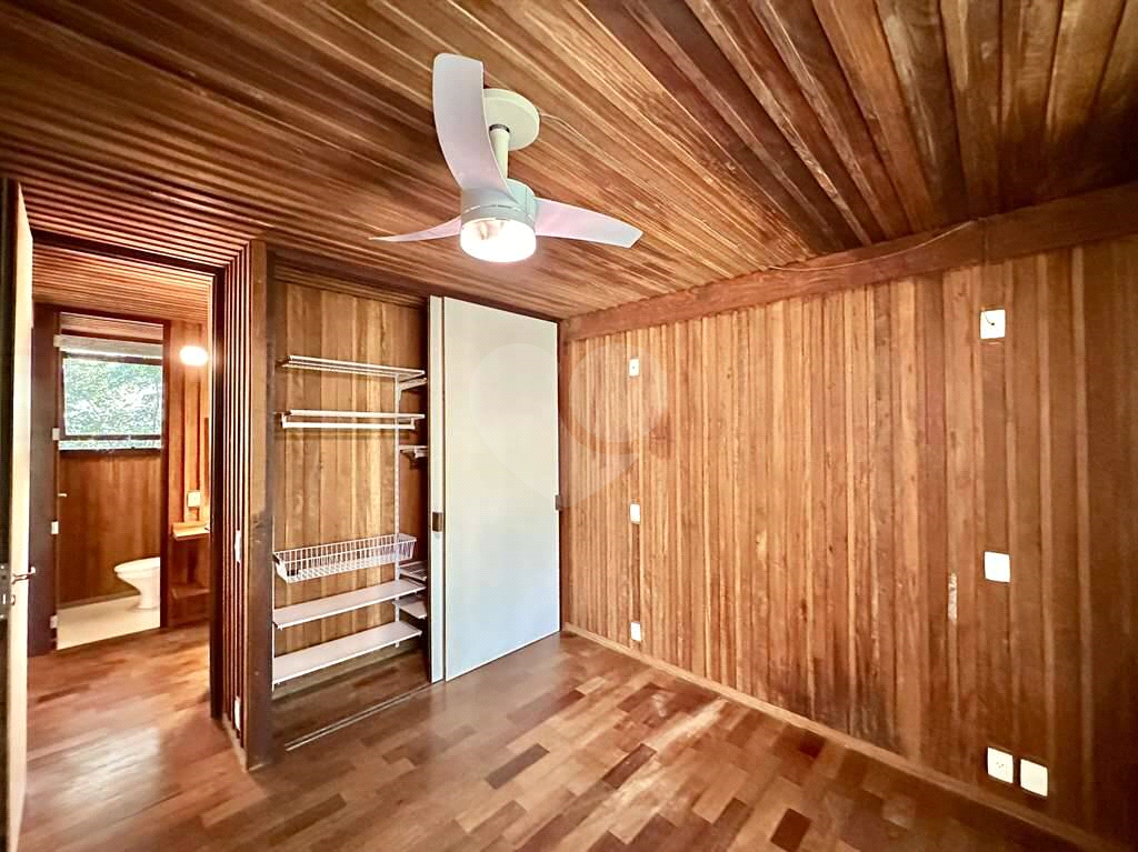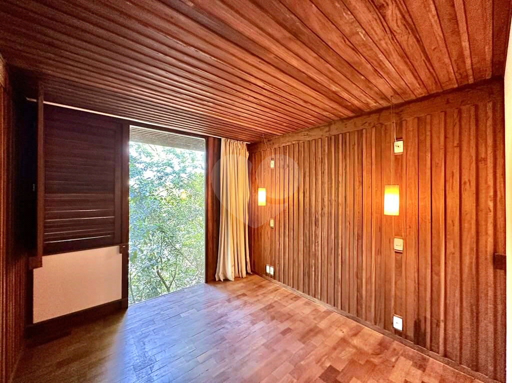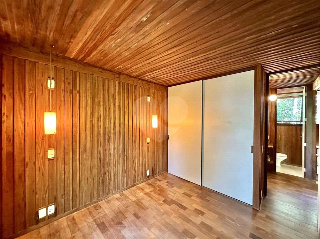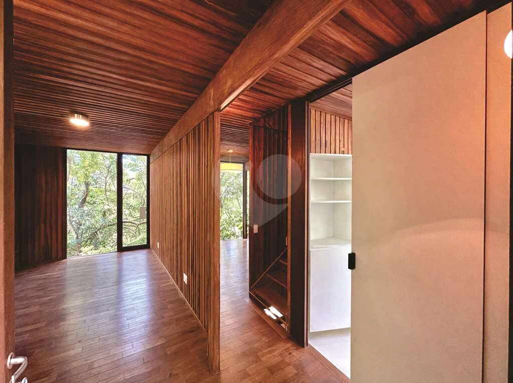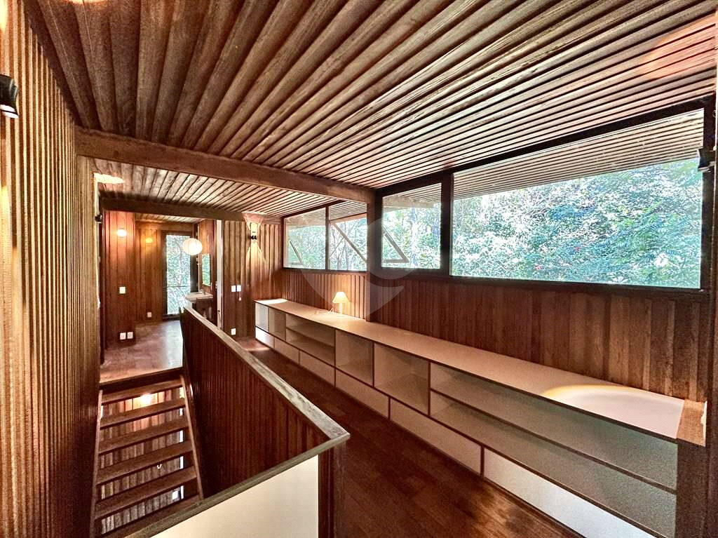 4 dormitórios em 2 alas, com armários, portas de correr e paredes envidraçadas voltadas para a natureza.