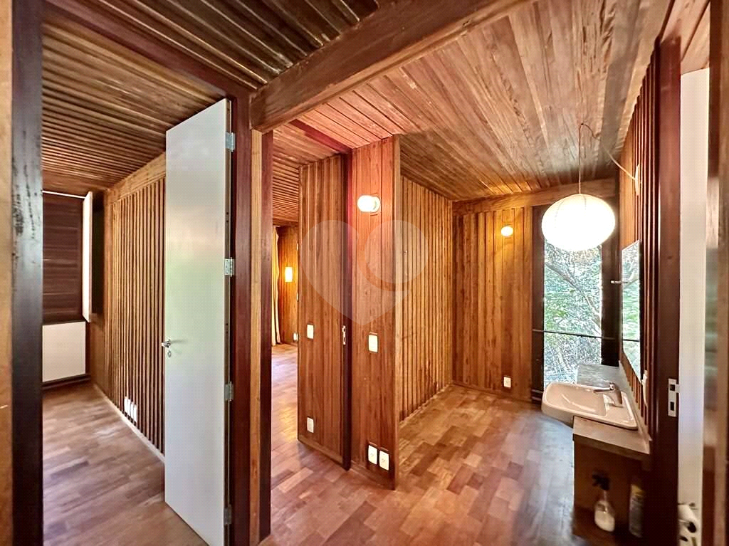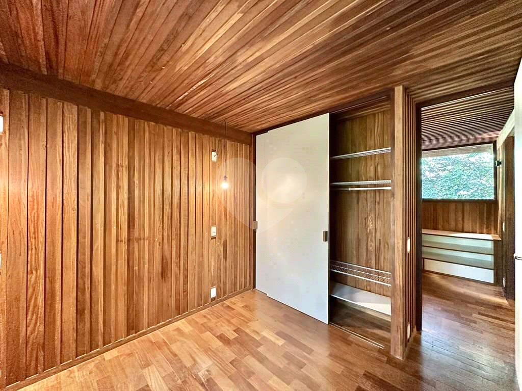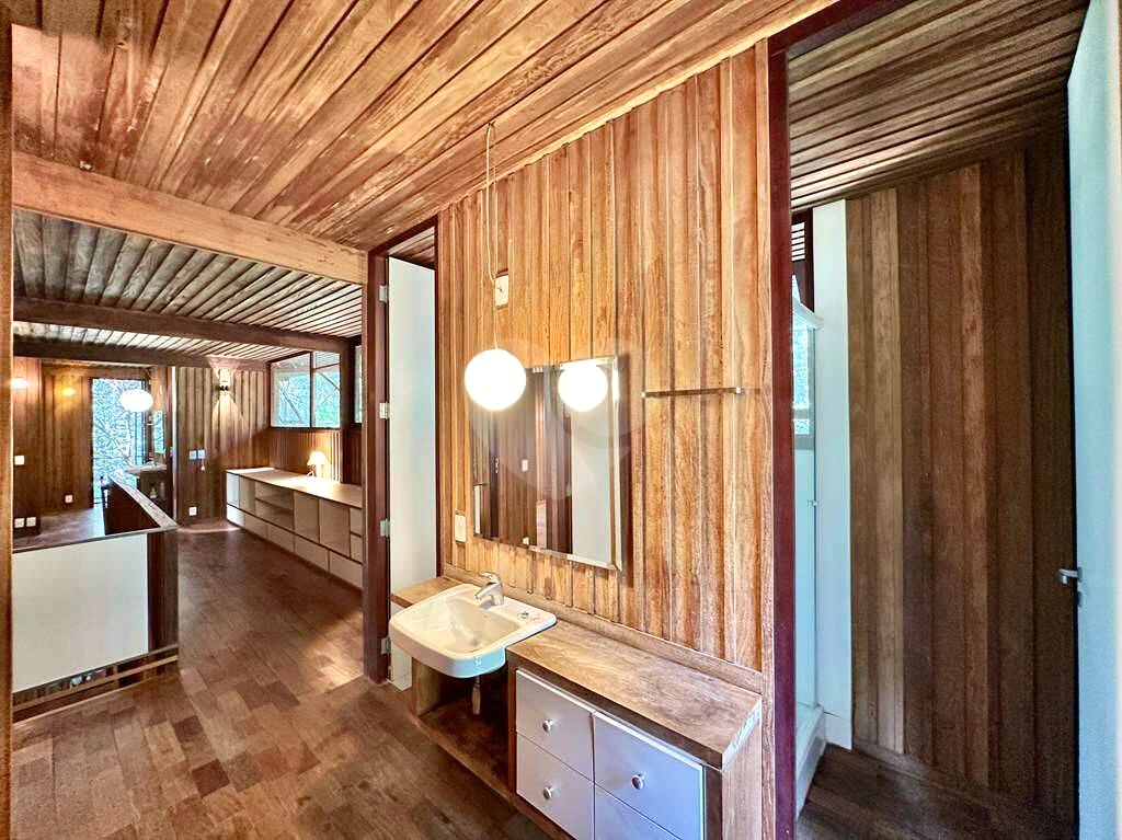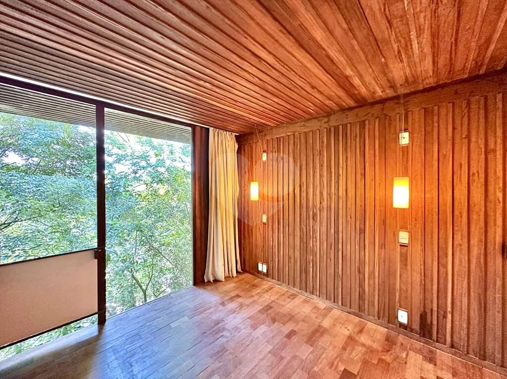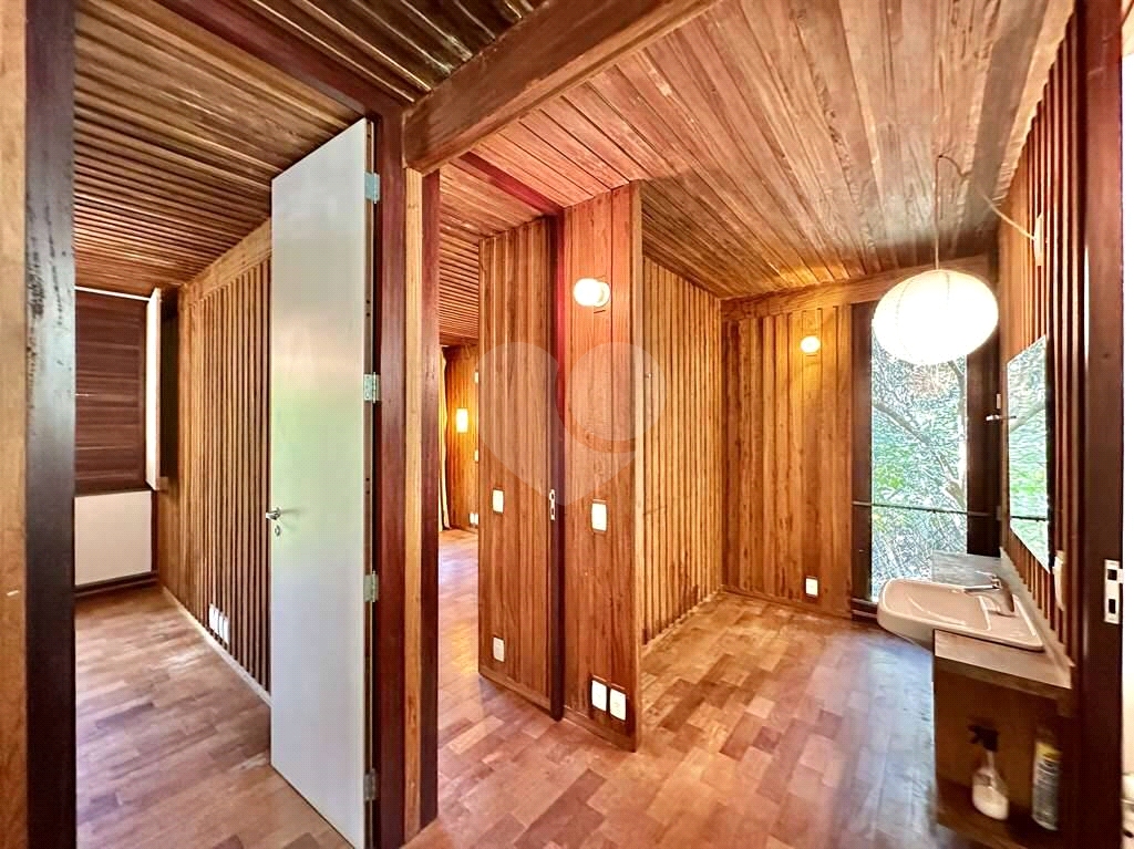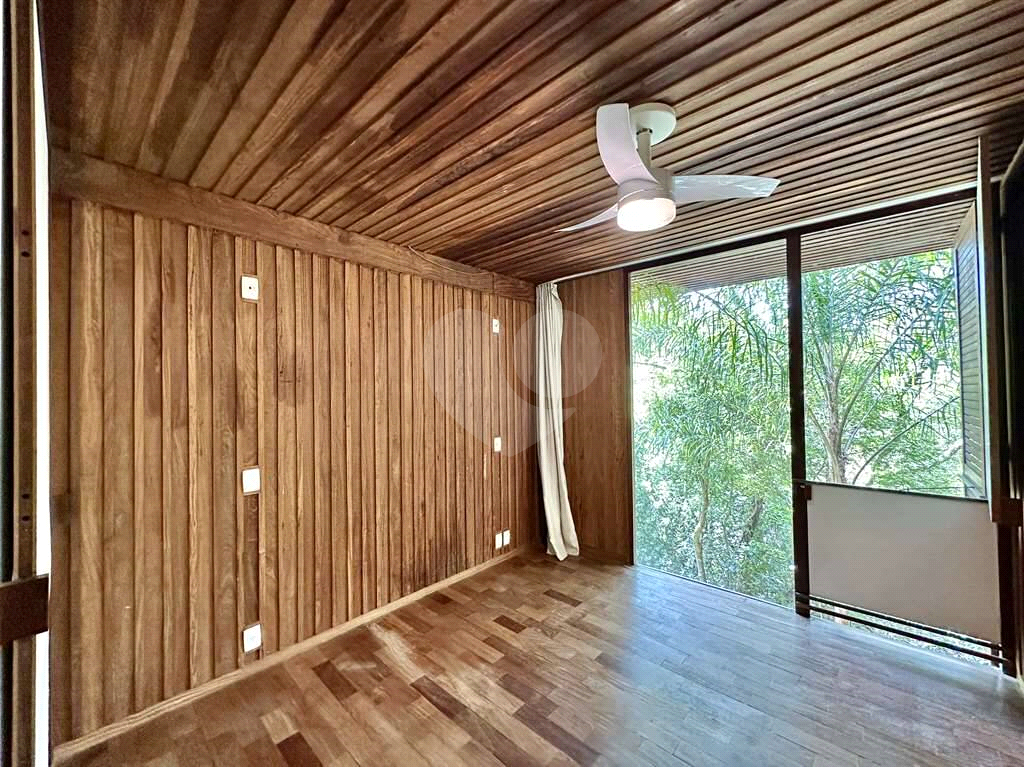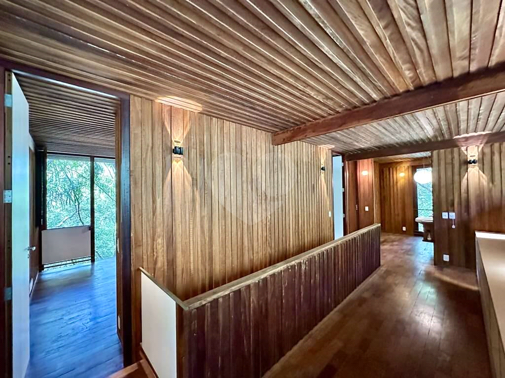 4 dormitórios em 2 alas, com armários, portas de correr e paredes envidraçadas voltadas para a natureza.