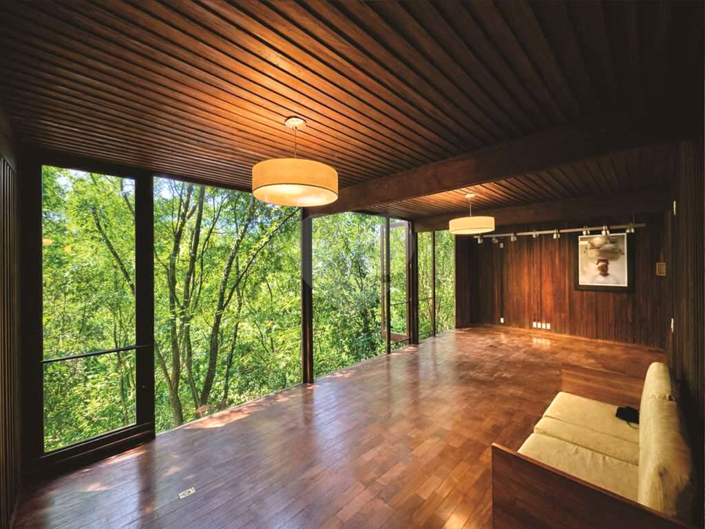 Materiais com muita madeira e vidro, convidando a natureza tropical exuberante para dentro de casa.