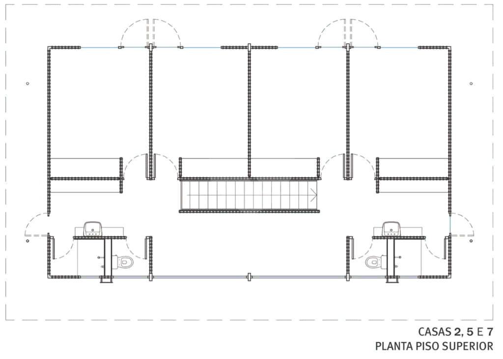 2 banheiros espelhados com lavatórios externos, janelas basculantes, torneiras monocomando, tampos, gavetas e nichos em madeira, espelhos, 2 vasos fechados, 2 chuveiros fechados com box de vidro e piso em fibra de vidro.