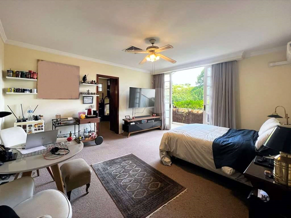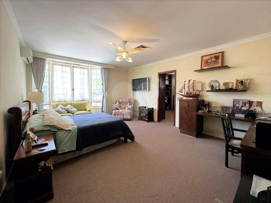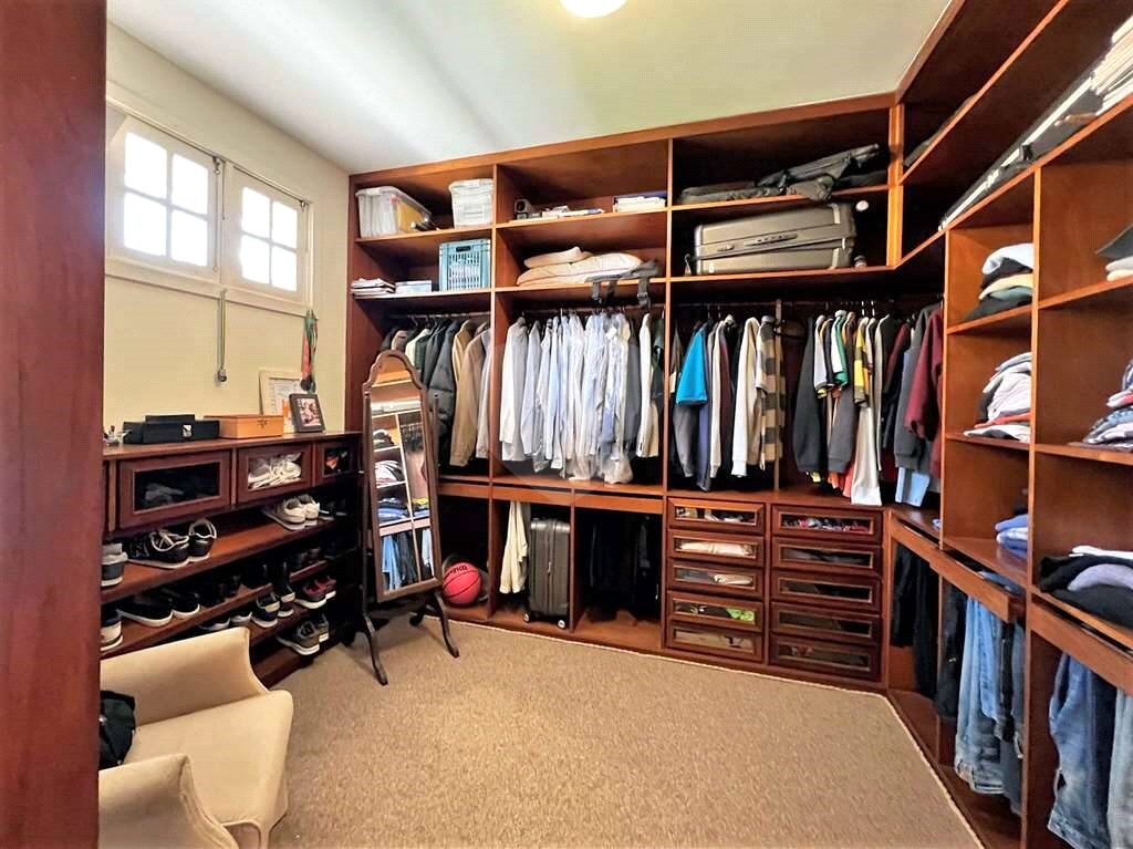 4 suítes com closets e armários de marcenaria artesanal, carpete, ar condicionados Q e F, ventiladores de teto. Sendo 1 suíte com varanda e a master com saleta para café da manhã, vista para o jardim e piscina , sala de vestir (para 2 closets).