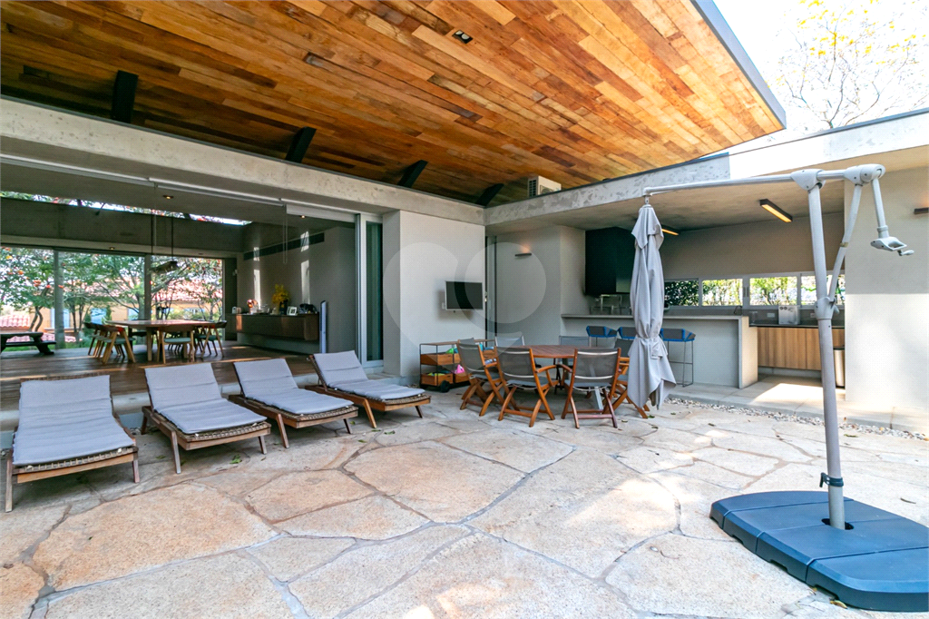 A cozinha é equipada com armários da Ornare, referência em design e sofisticação, combinando estética refinada e máxima funcionalidade. Complementando o alto padrão, a residência é decorada com móveis italianos, que reforçam a elegância e o cuidado na escolha de cada peça do projeto.