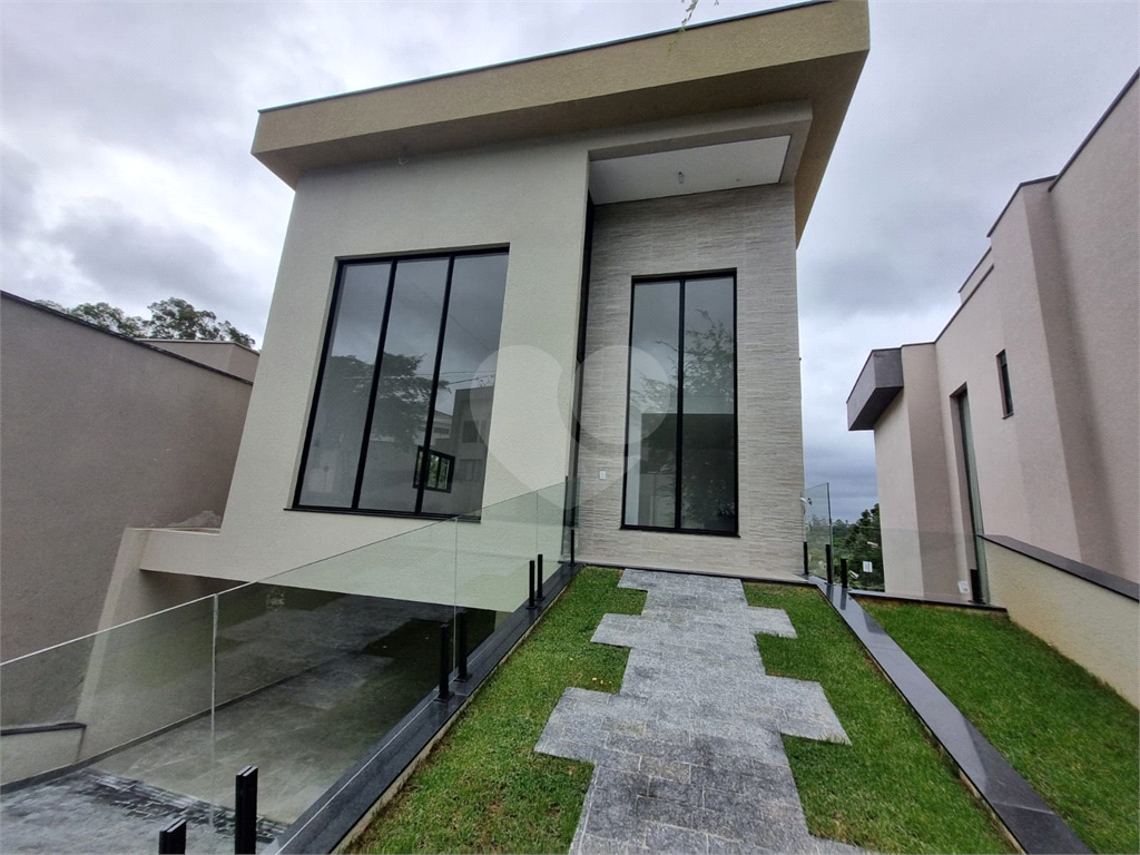O fachada com um projeto arquitetônico moderno complementa a estética sofisticada deste imóvel. Sua localização privilegiada em uma rua com vista infinita para a mata de preservação e montanhas, garante privacidade e tranquilidade aos moradores. A casa dispões de quatro vagas cobertas na garagem.