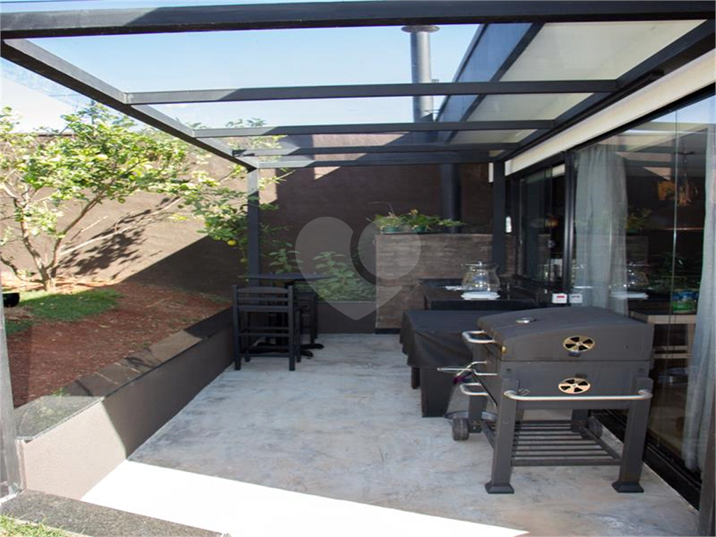 área de churrasqueira externa projetada com estrutura metálica e