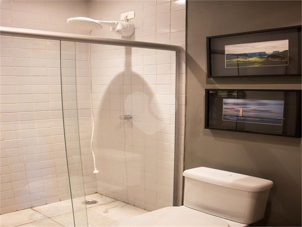 Com sofá cama e banheiro completo , ducha higiênica, chuveiro com box de vidro e gabinete