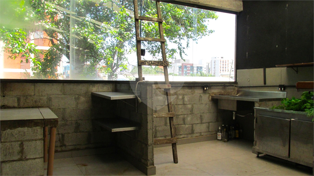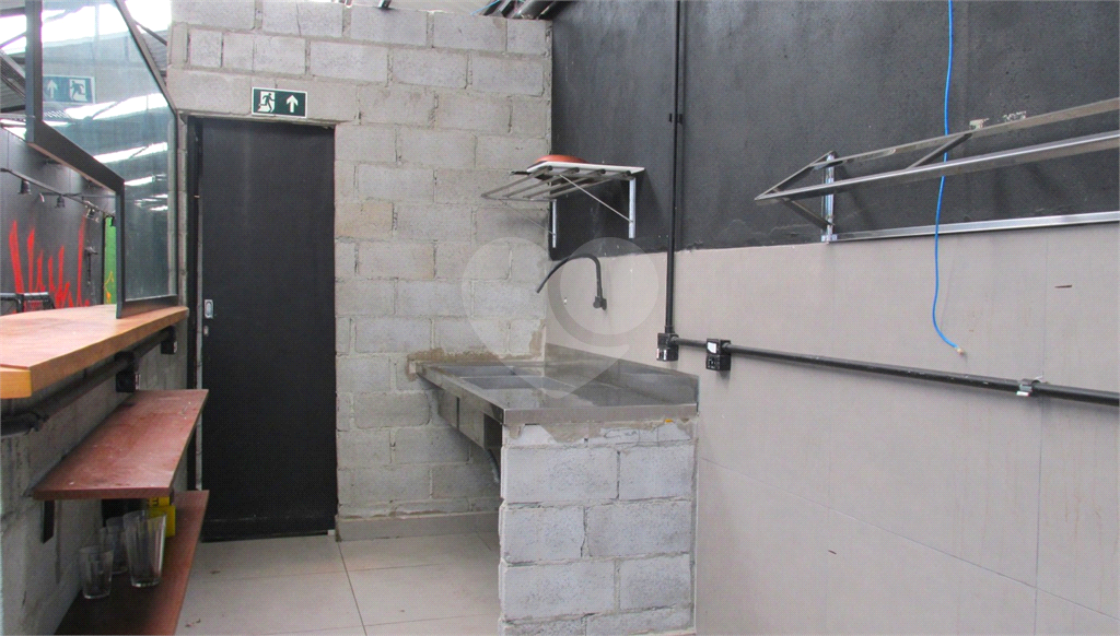 Mezanino (50 m²): pé-direito de 3,00 m, banheiro, cozinha com duas pias em inox e balcão em madeira