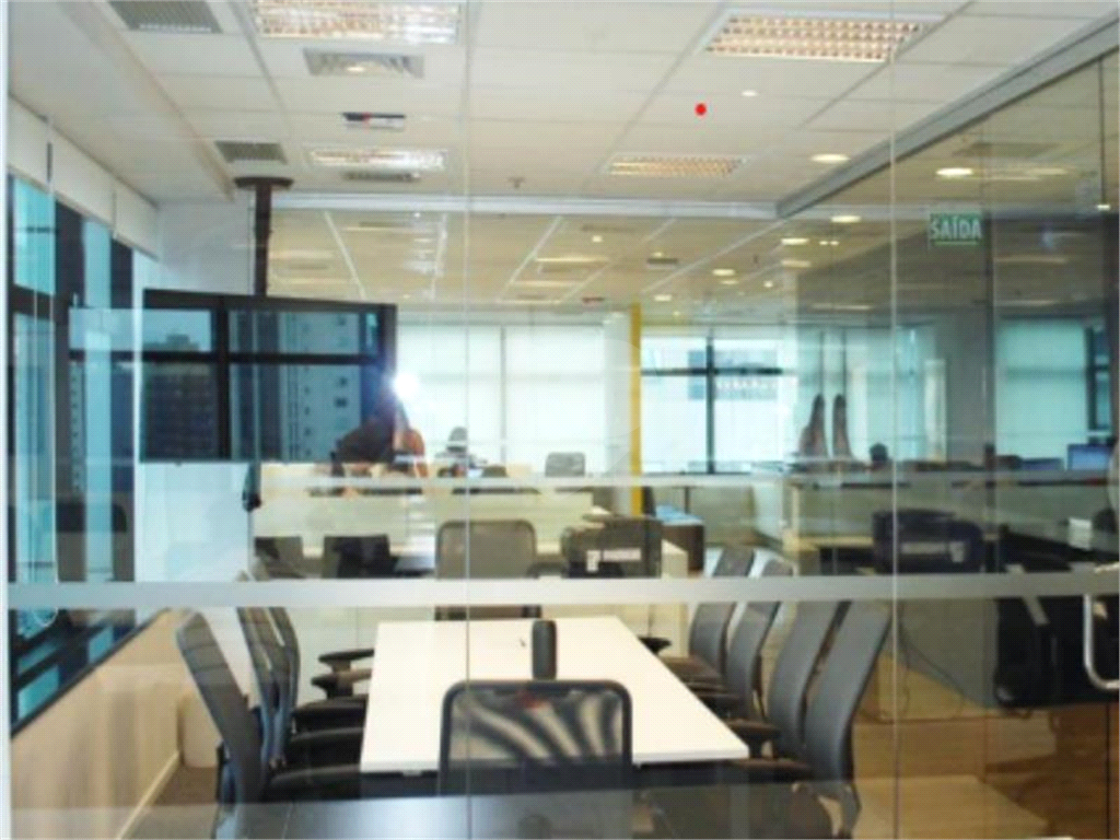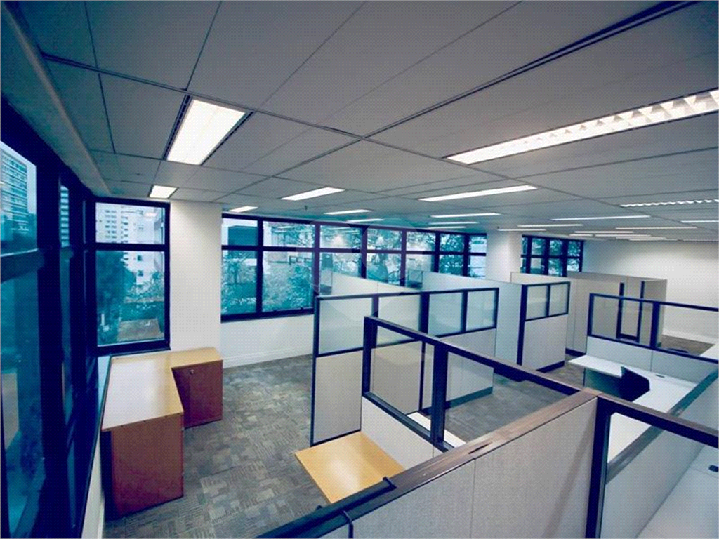 Piso com canaletas. a Forro e luminárias. a Ar condicionado central individual por conjunto. a Janelas tipo maxi ar com vista para a Alameda Santos e rua Leôncio de Carvalho. a Edifício com gerador elétrico.