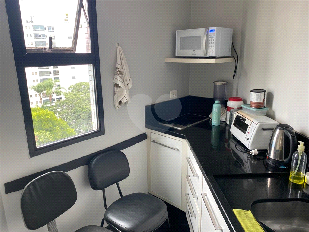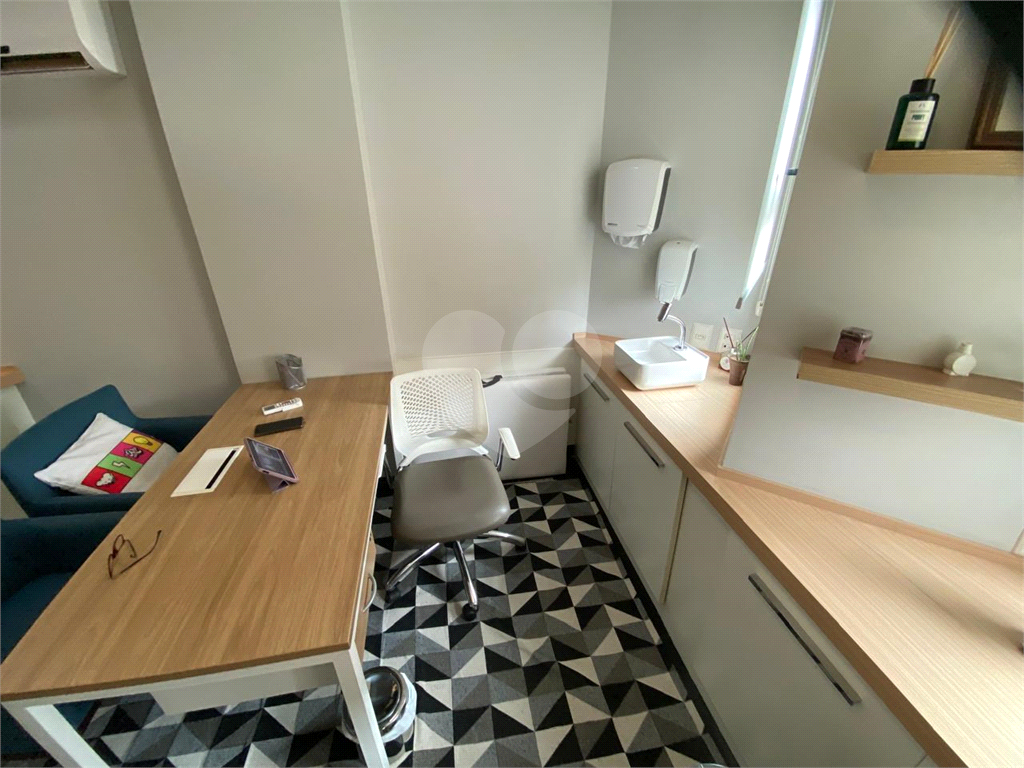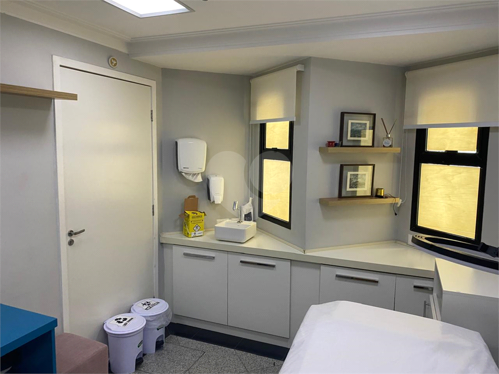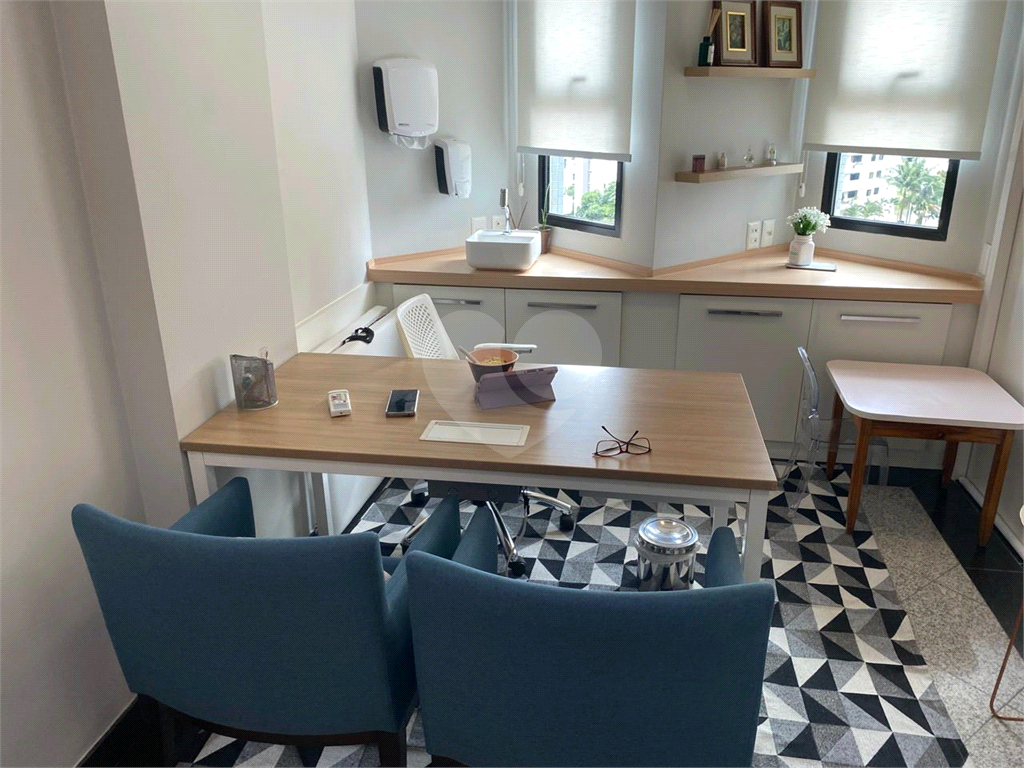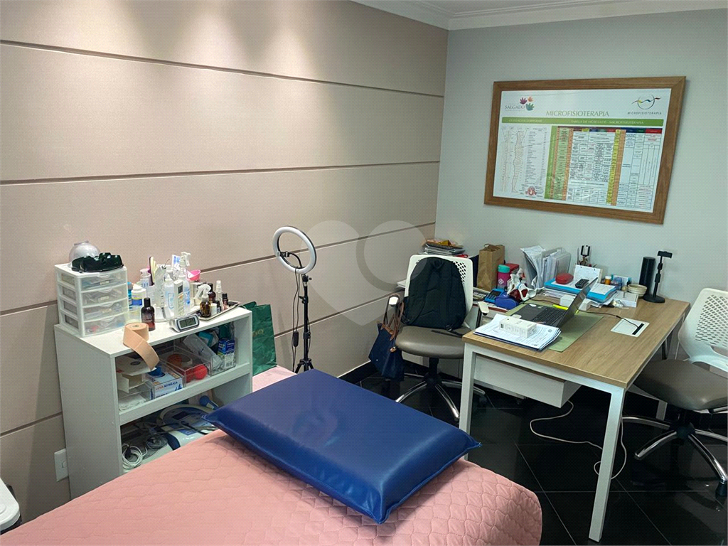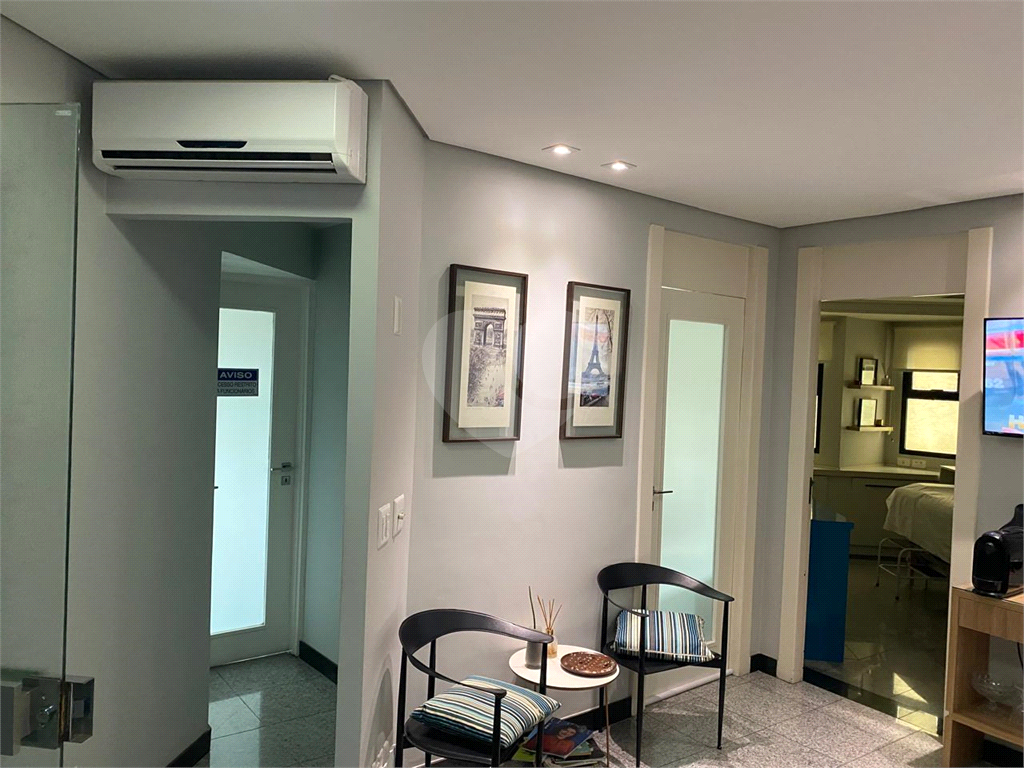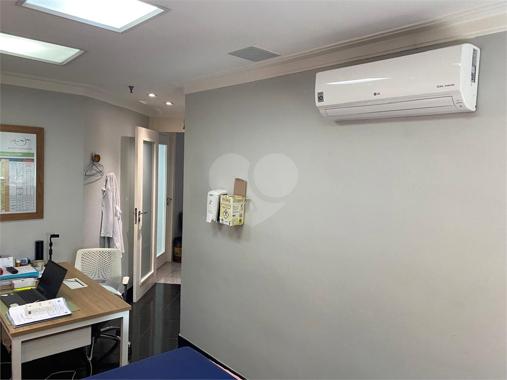 Conjunto comercial a venda no Campo Belo, perto do metrô, com 91 m2, ar-condicionado, sala de recepção e espera, várias salas, copa, 2 banheiros e duas vagas de garagem. O condomínio é bem cuidado, contando com recepcionistas, vagas para visitantes e controle de entrada por catraca.