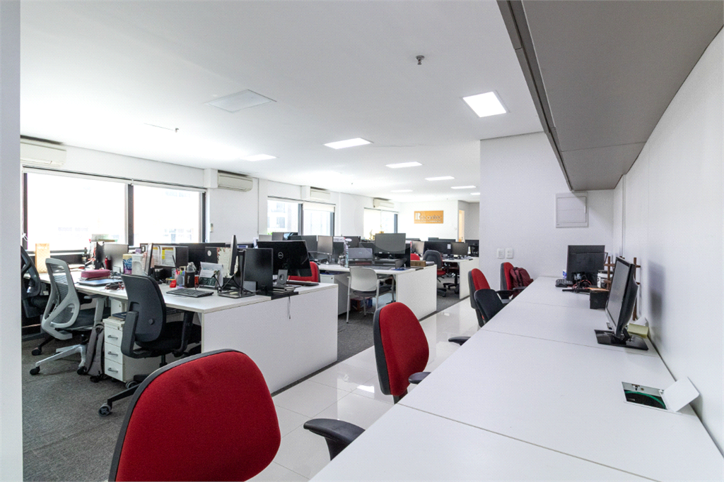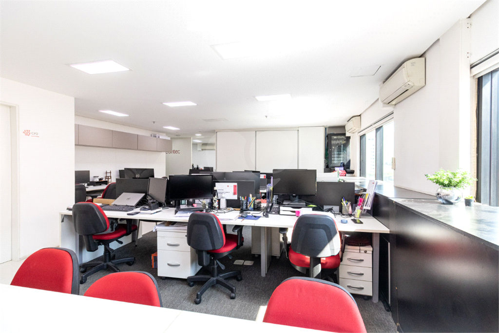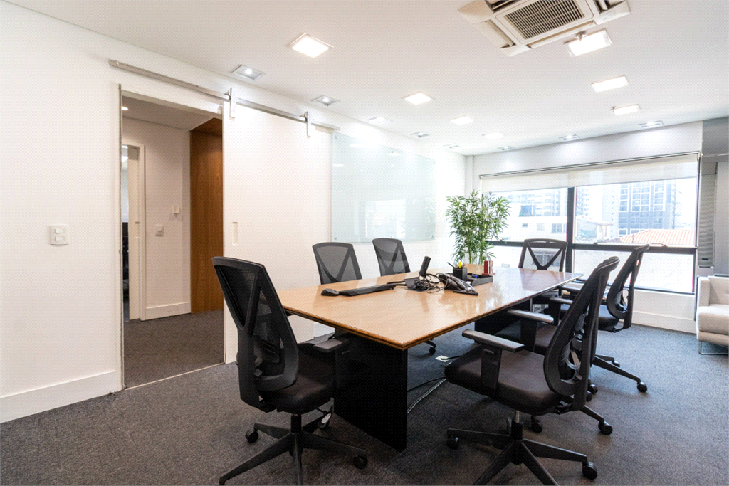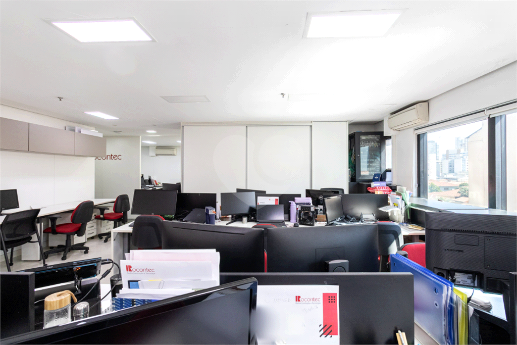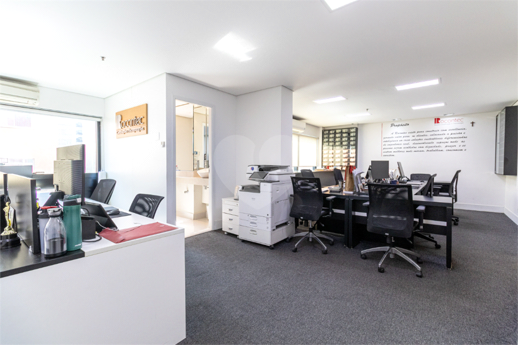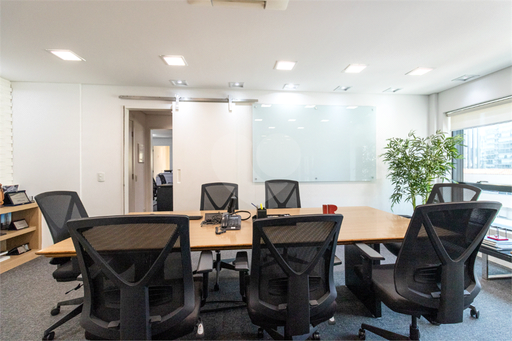 O imóvel conta com seis banheiros, proporcionando comodidade para equipes de diferentes tamanhos. Além disso, há uma sala de reunião estrategicamente posicionada, que oferece uma vista privilegiada e excelente iluminação natural, tornando os encontros mais produtivos e agradáveis.