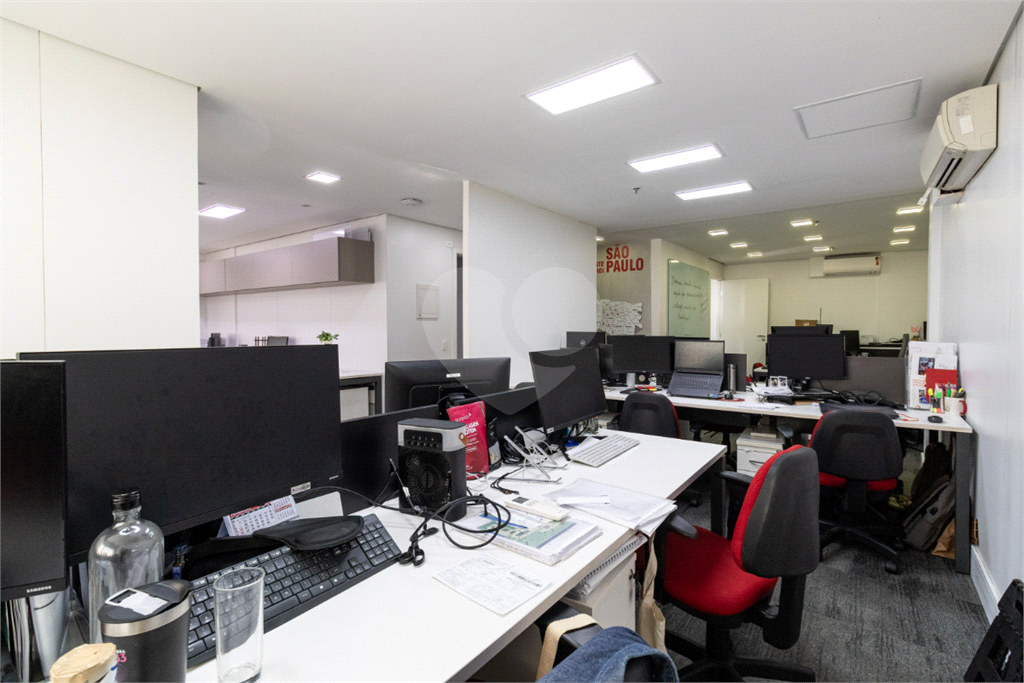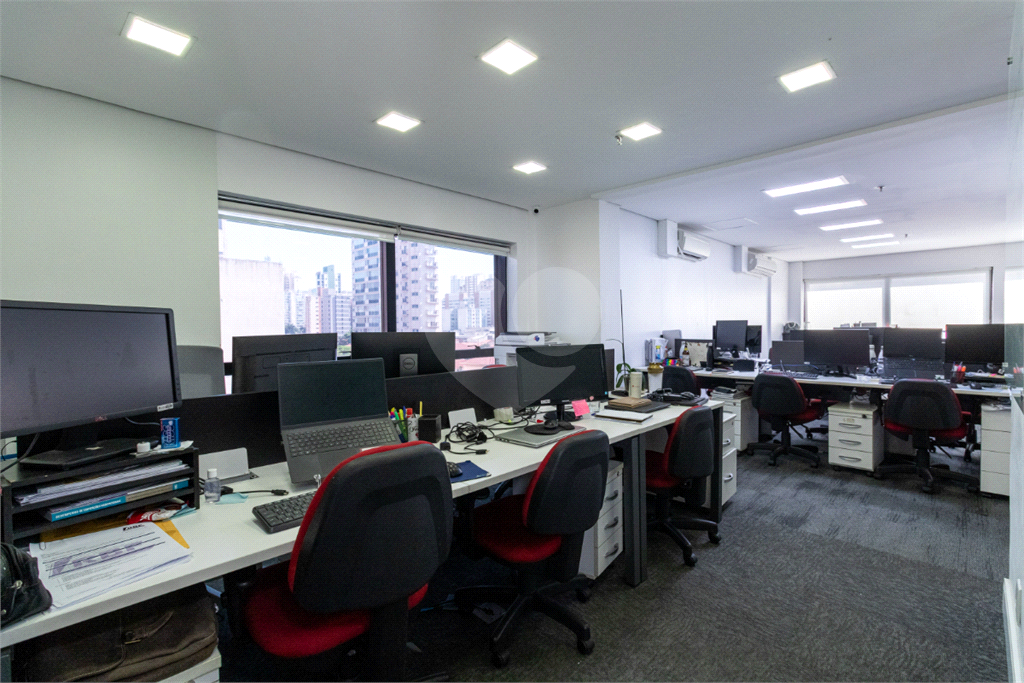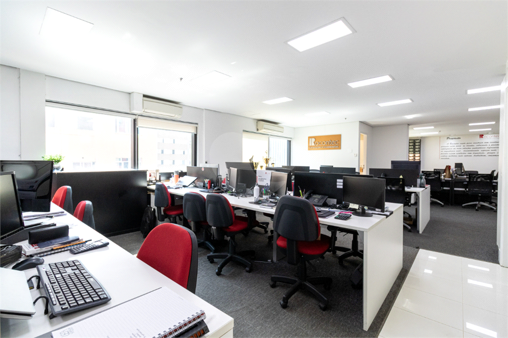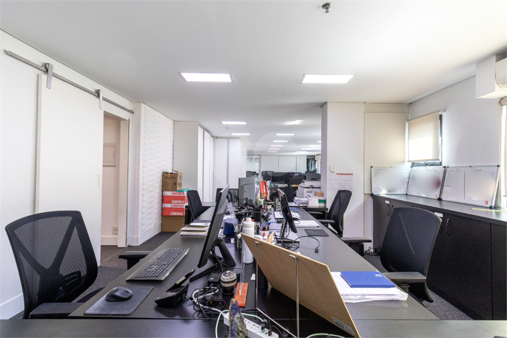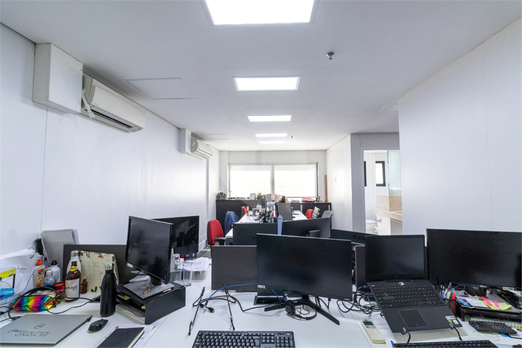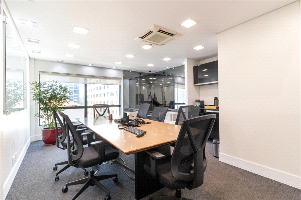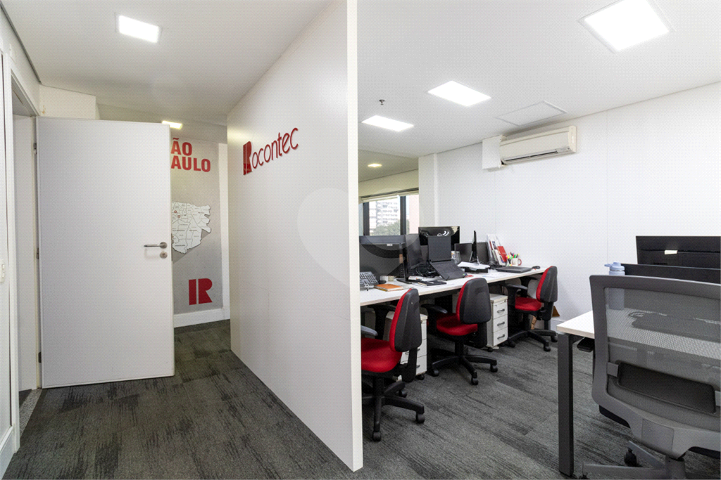 O imóvel conta com seis banheiros, proporcionando comodidade para equipes de diferentes tamanhos. Além disso, há uma sala de reunião estrategicamente posicionada, que oferece uma vista privilegiada e excelente iluminação natural, tornando os encontros mais produtivos e agradáveis.