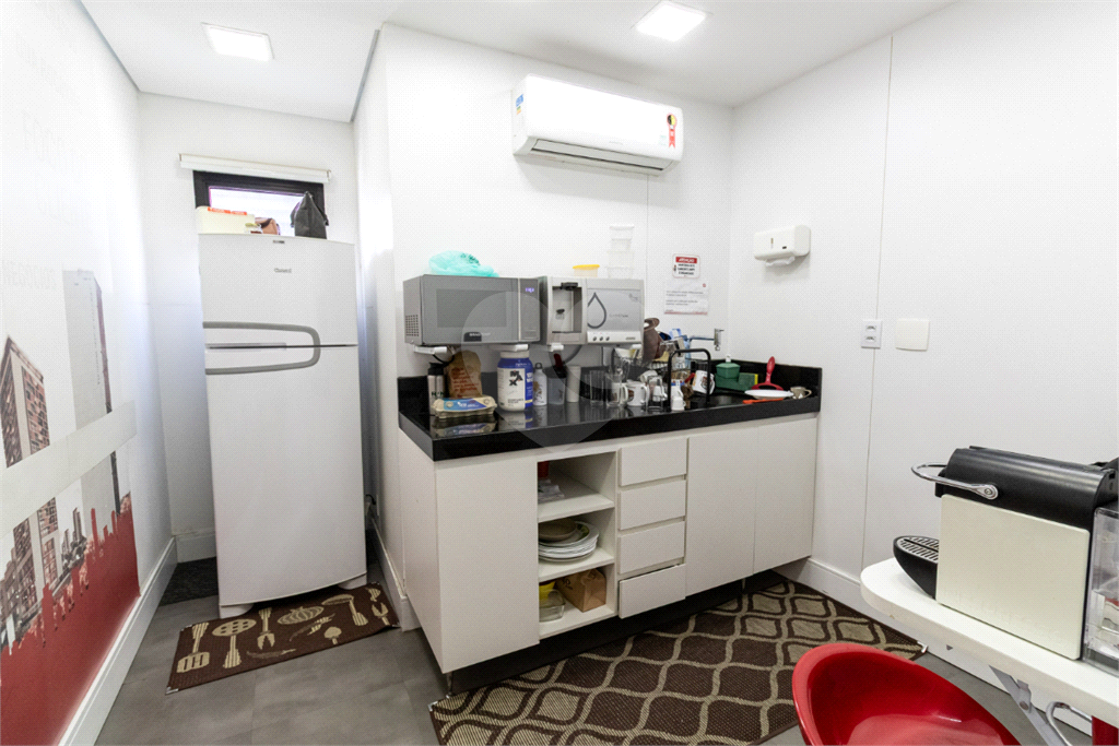 Para maior praticidade no dia a dia, a sala dispõe de uma copa bem equipada, ideal para refeições rápidas e momentos de descontração entre os colaboradores. O layout do espaço é versátil e permite a fácil adaptação de baias e estações de trabalho, garantindo um ambiente organizado e eficiente para sua equipe.