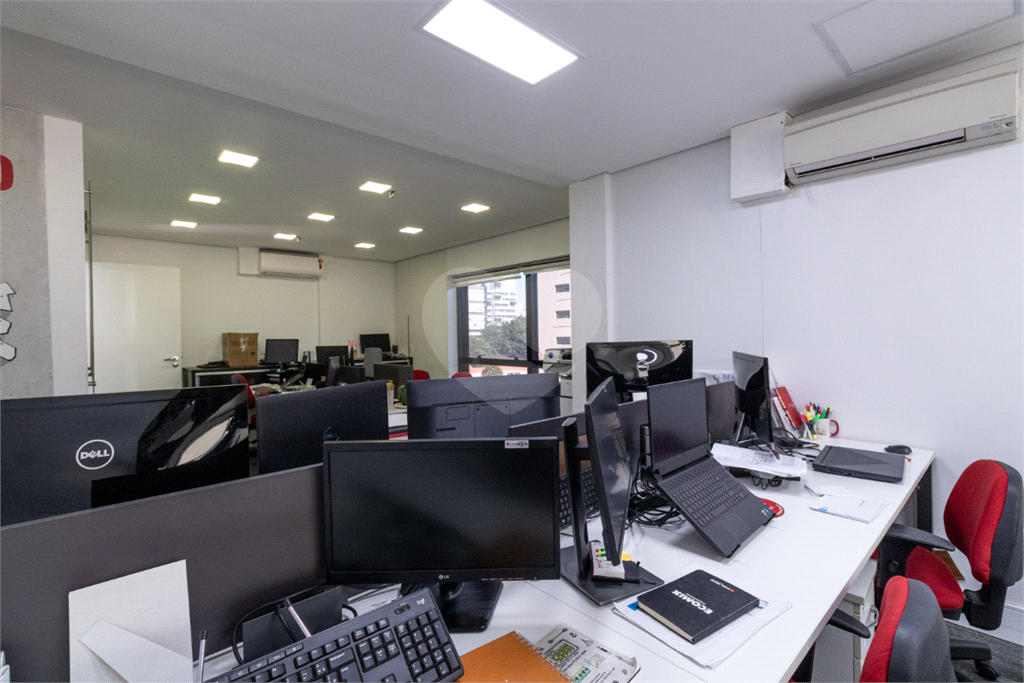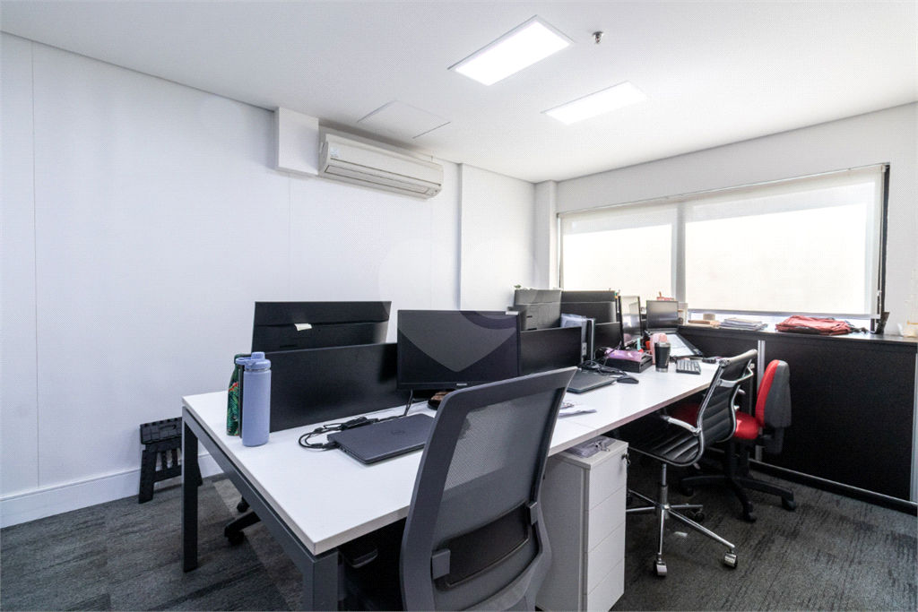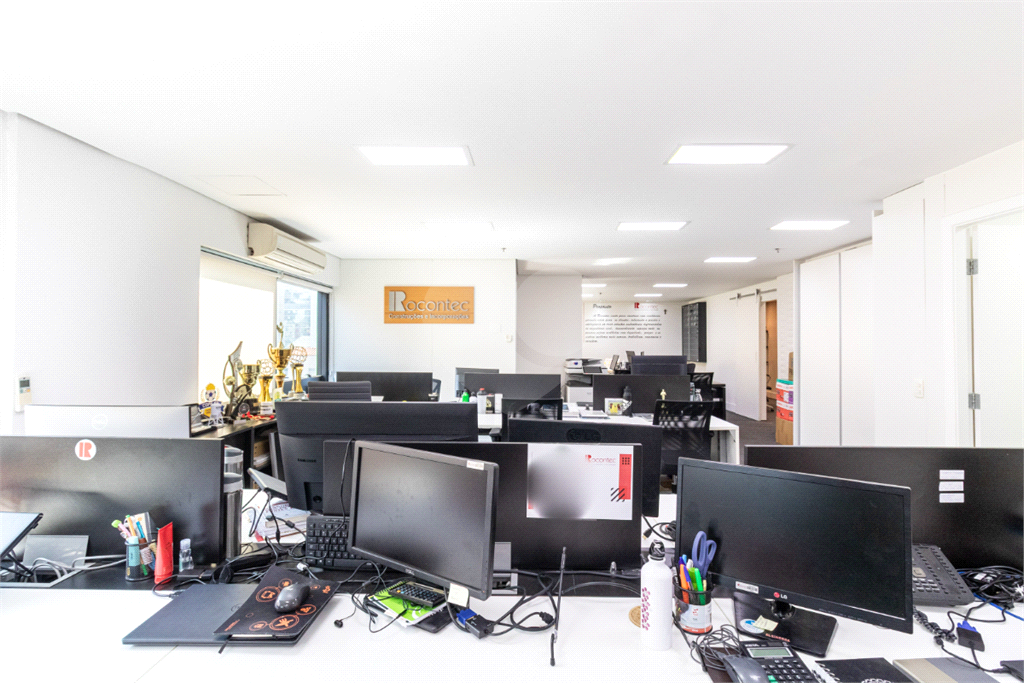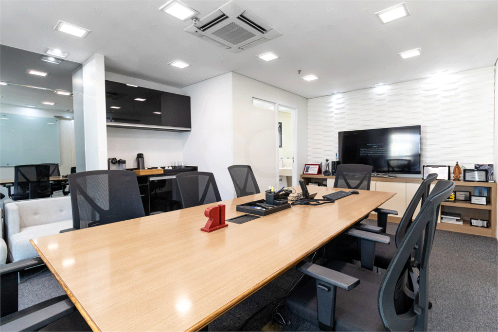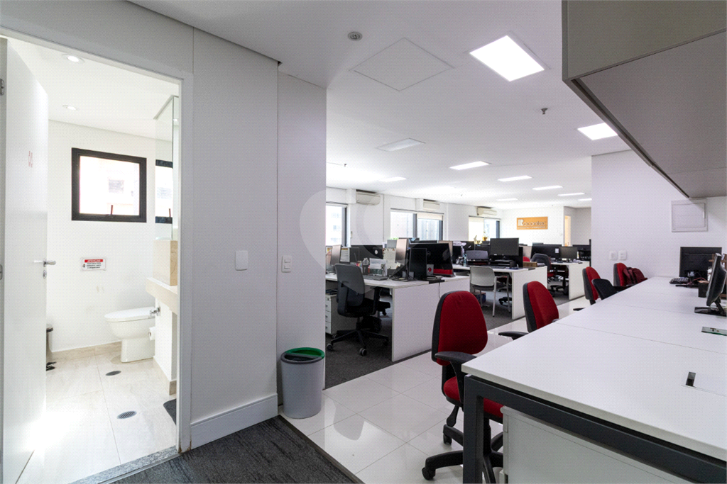 O imóvel conta com seis banheiros, proporcionando comodidade para equipes de diferentes tamanhos. Além disso, há uma sala de reunião estrategicamente posicionada, que oferece uma vista privilegiada e excelente iluminação natural, tornando os encontros mais produtivos e agradáveis.